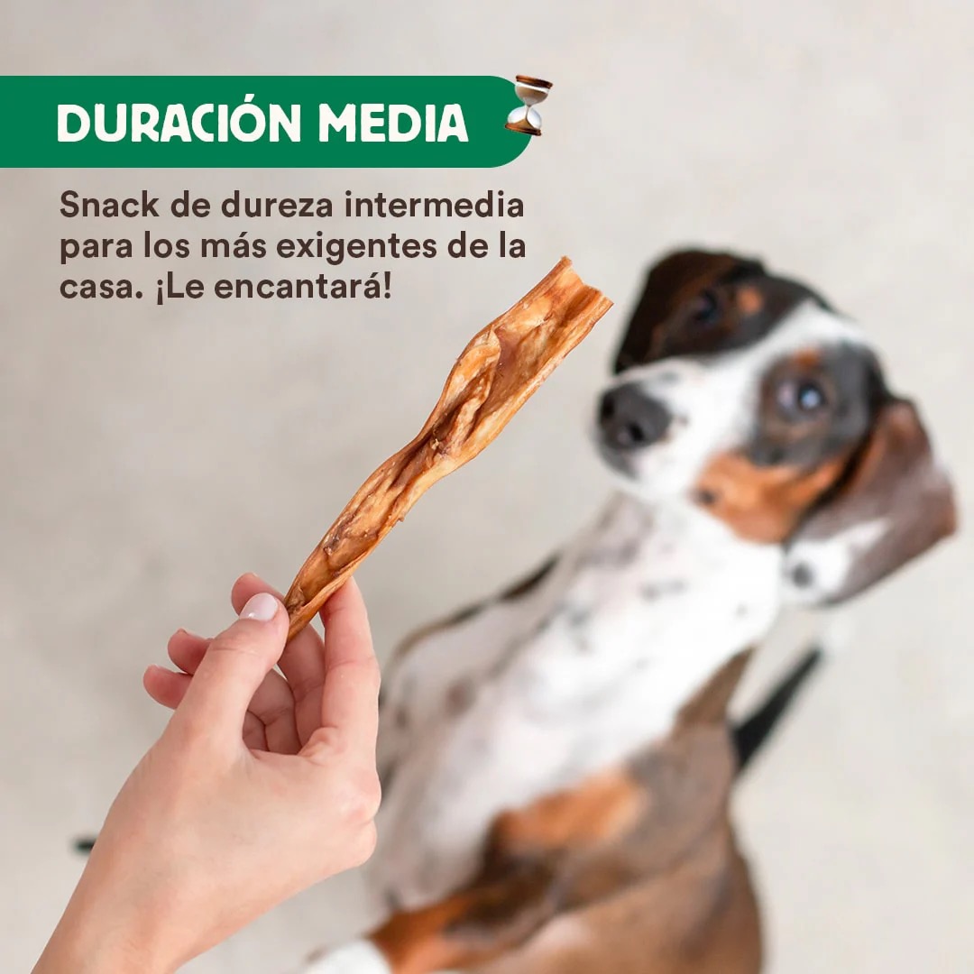Estos snacks están hechos con ingredientes 100% naturales, sin aditivos ni conservantes artificiales, lo que garantiza que tu perro reciba una dieta equilibrada y saludable. Además, proporcionan un elevado nivel de proteínas de alto valor biológico y una mínima cantidad de hidratos de carbono.