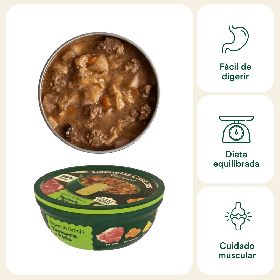 Sé el primero en valorar “Cazuela casera de Ternera y Piña para perros 280g”
