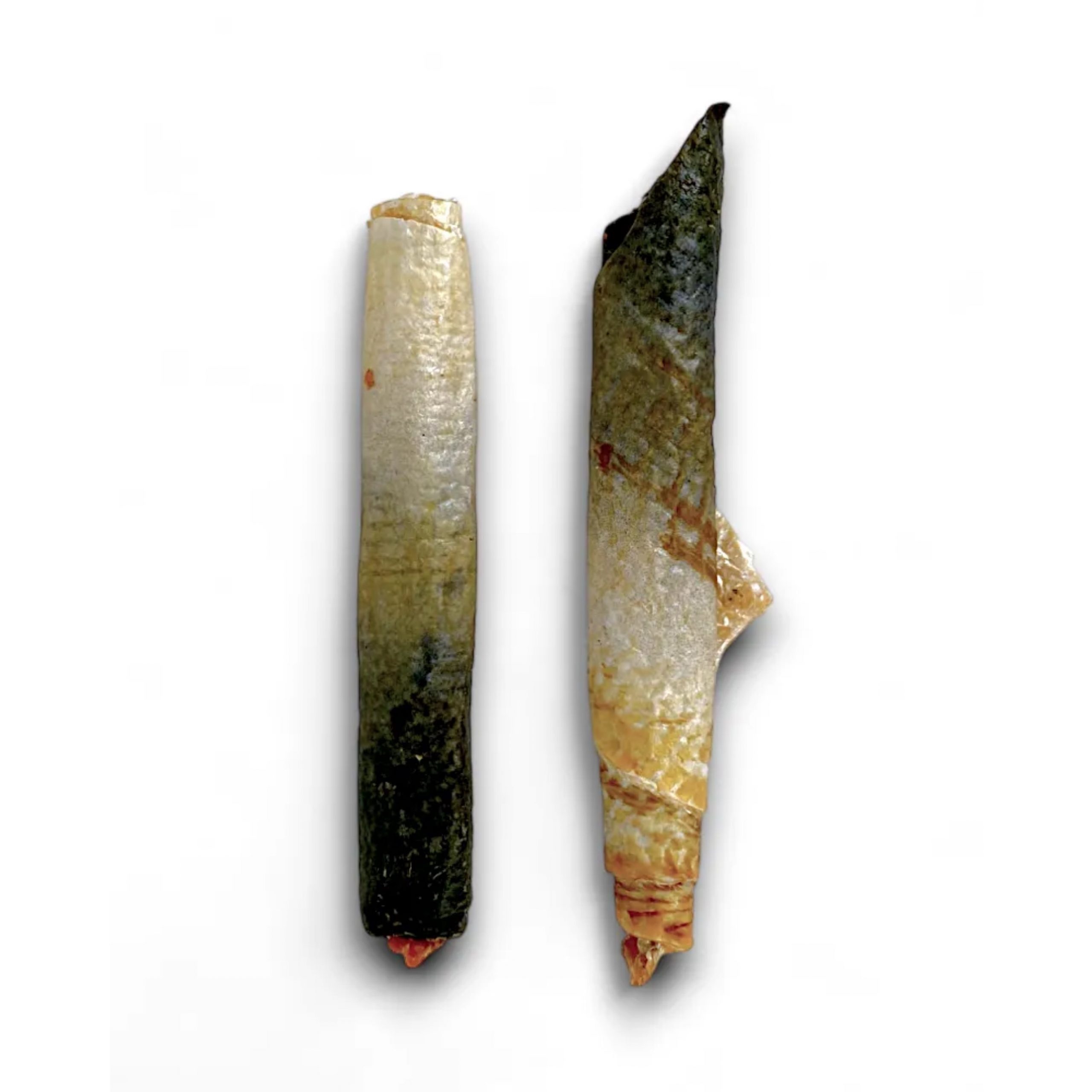 Los Rollitos de Salmón son un snack fácil, ligero, de dureza media y textura crujiente. Es apto para cualquier tamaño de perro. Delicioso premio deshidratado para tu perro. Elaborados con salmón 100% natural.