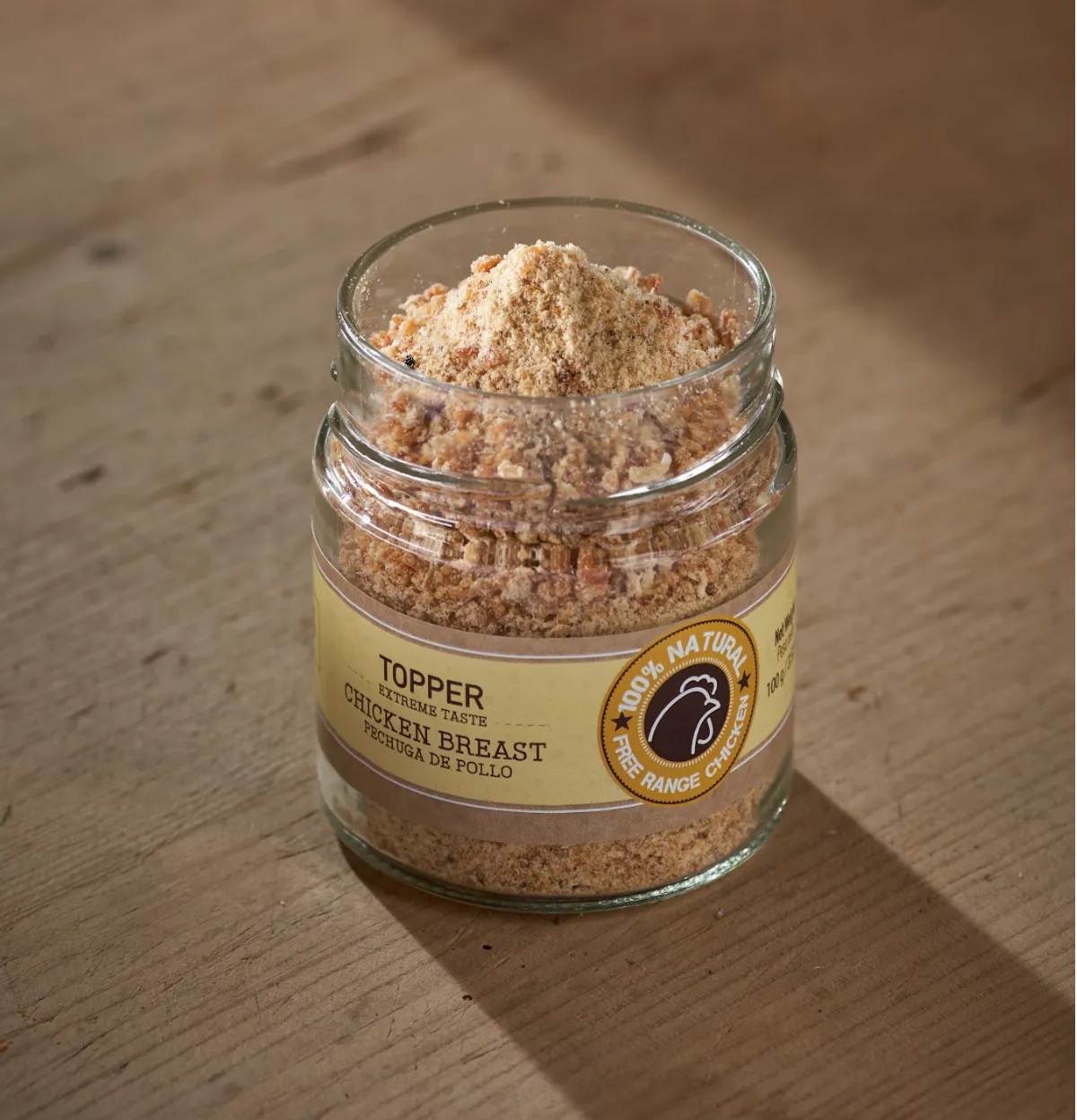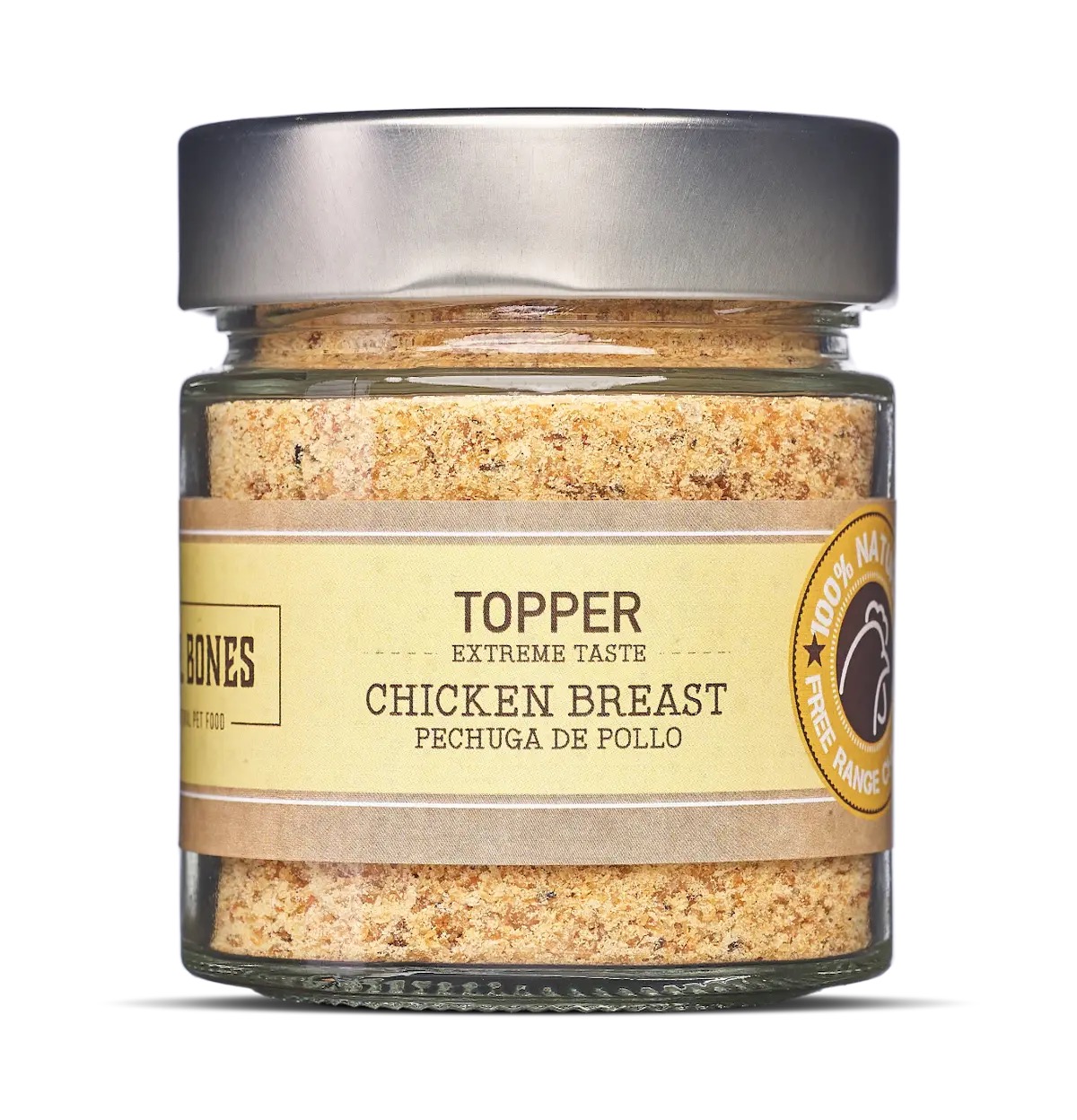 Complemento 100% natural para perros y gatos, elaborados a partir de pechuga de pollo de la mejor calidad, secada con aire a baja temperatura para conservar todas sus propiedades y triturada hasta conseguir una textura granulada. De esta forma, los Toppers de pechuga de pollo se convierten en un complemento natural y saludable para tu perro o gato, ya que conservan todos sus nutrientes, aromas y sabores. ¡Tu peludo no se podrá resistir!