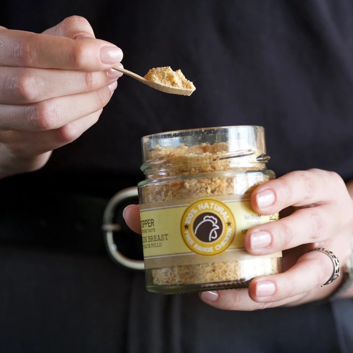 Gracias a la cucharita de madera que hay dentro de cada tarro, el proceso de espolvoreado será muy sencillo.